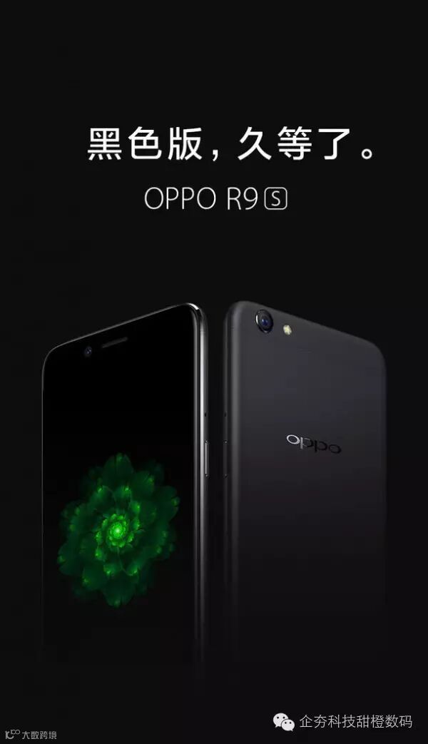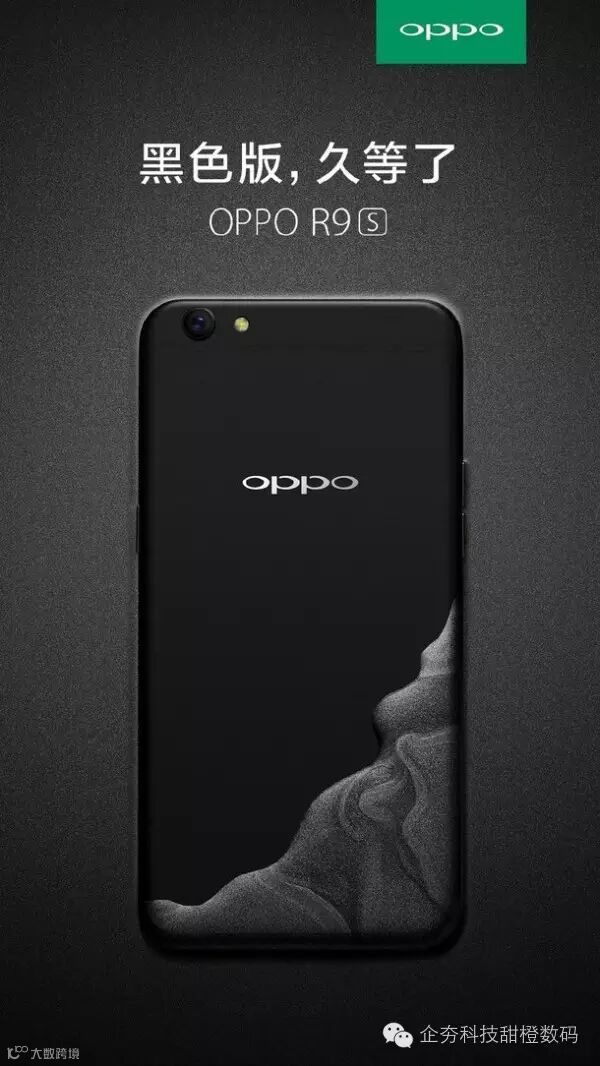 从宣传海报的背景来看,OPPO R9s的材质应该是磨砂黑,亮黑色在防刮性能上表现较差,或许不会选择这一配色。