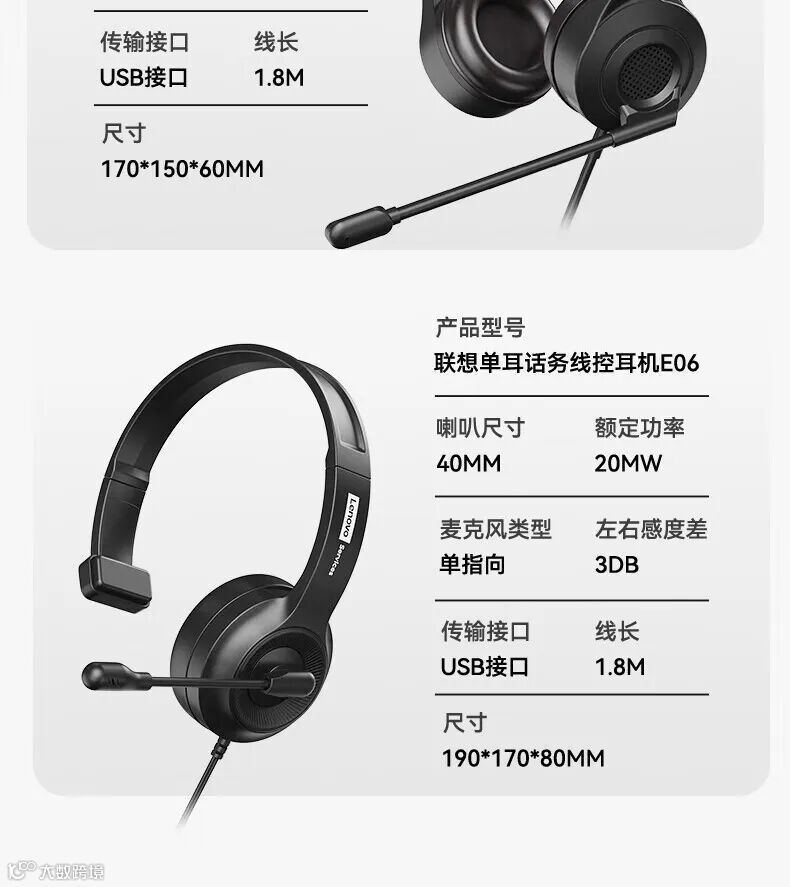 联想(lenovo) 耳机耳麦头戴式线控笔记本电脑耳麦带话筒麦克风后挂式耳机入耳式小米华为vivo苹果 E01【USB接口】【TYPE-C接口】【3.5mm双接口】 单耳带线控(40PCS/箱)
