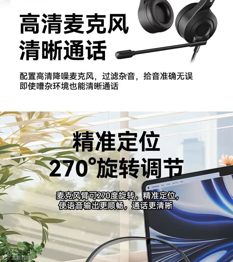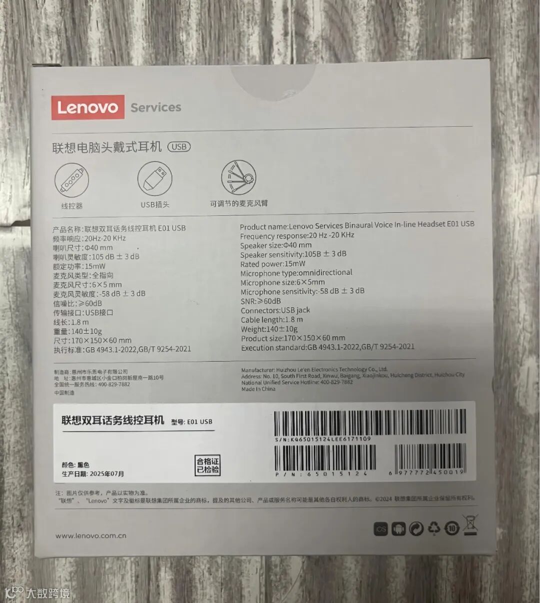 九鸿创新北京科技有限公司联想(lenovo) 耳机耳麦头戴式线控笔记本电脑耳麦带话筒麦克风后挂式耳机入耳式小米华为vivo苹果 E01【USB接口】【TYPE-C接口】【3.5mm单接口】 双耳带线控(40PCS/箱)
