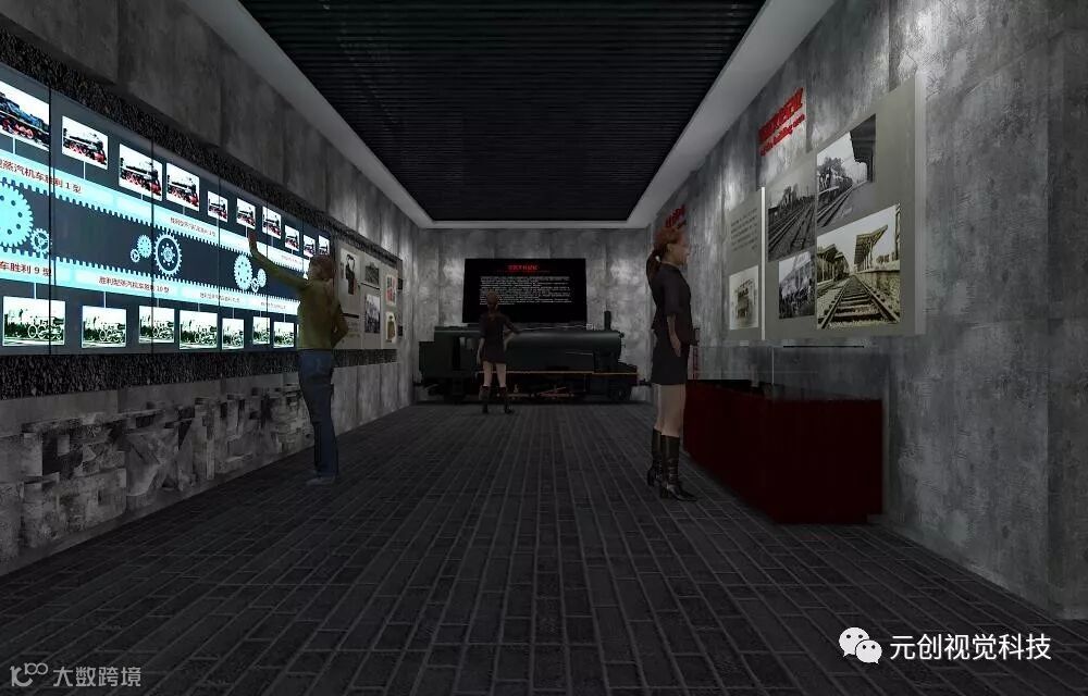 展区过渡以岳阳火车站做为门、以红车轨道和车厢为设计元素,结合工具、展柜等形象展现,通过展板和滚动触控屏来点亮铁路展区空间,传达岳阳火车站当时文化的气息。