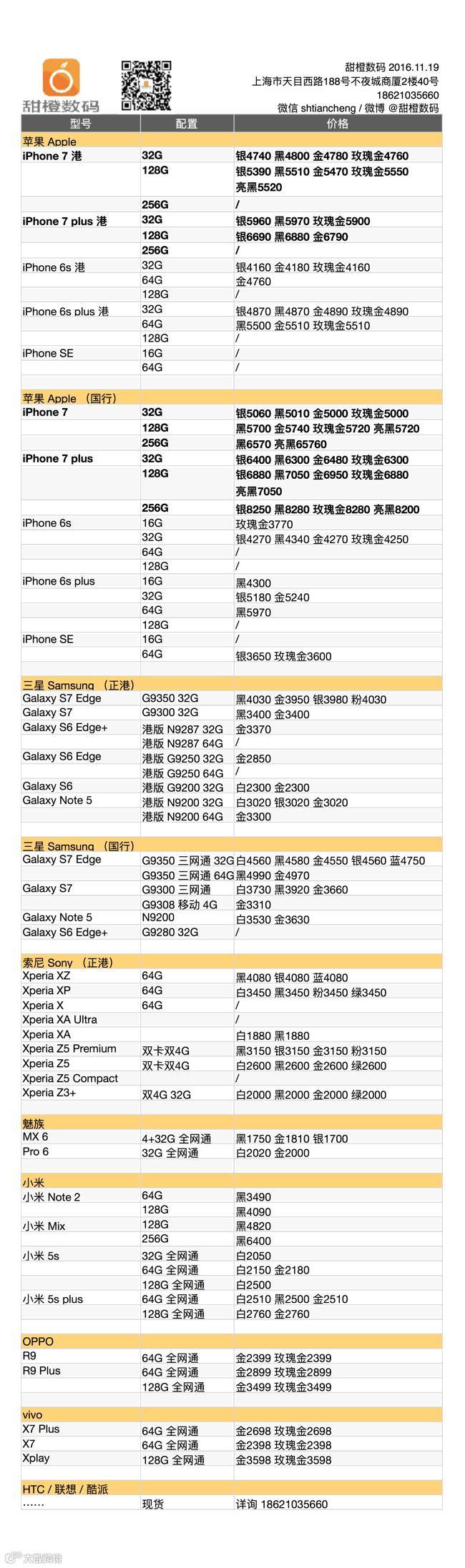 iPhone 7 及 plus 港版机型需求强劲,周末再次上浮售价,好在国行版各款机型价格稳定,特别是 iPhone 7 plus 128G,再次降价超 100;三星 Galaxy Note 5 和 S7 两款机型的港版价格小幅松动。