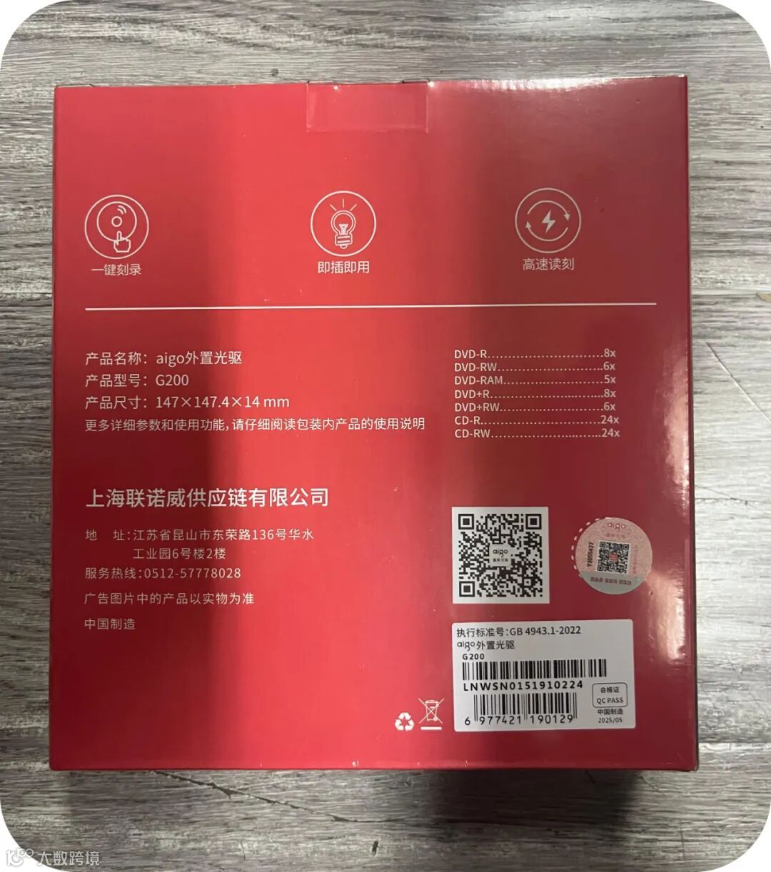 爱国者(aigo)8倍速 USB外置光驱 DVD外置刻录机 移动光驱 外接光驱 笔记本电脑便携光驱外置读刻一体黑色 G200(20PCS/箱)