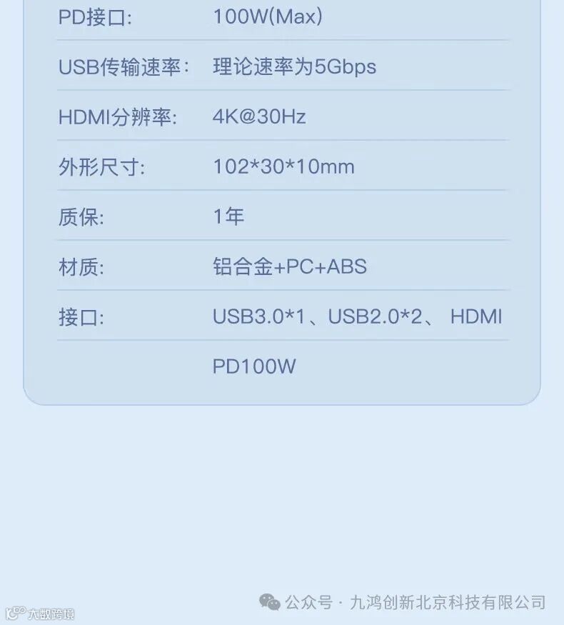 【PD100W快充拒绝掉电】五合一多功能【HDMI高清4k投屏PD快充更稳定USB高速传输文件】一年质保