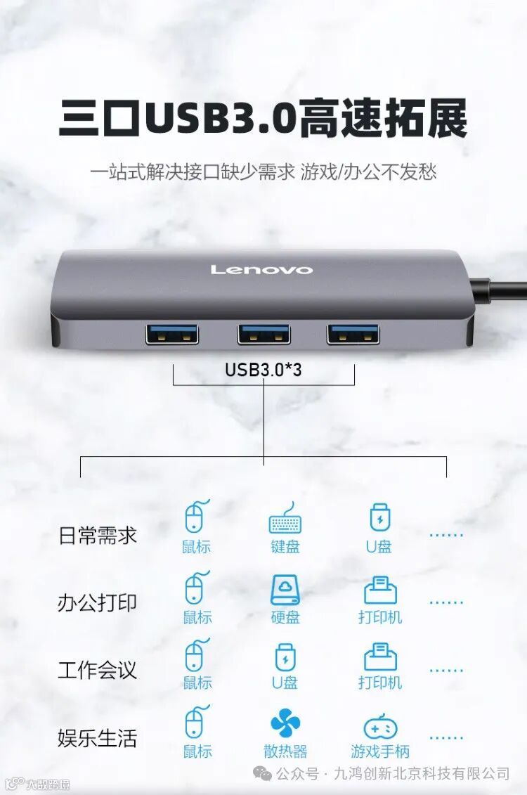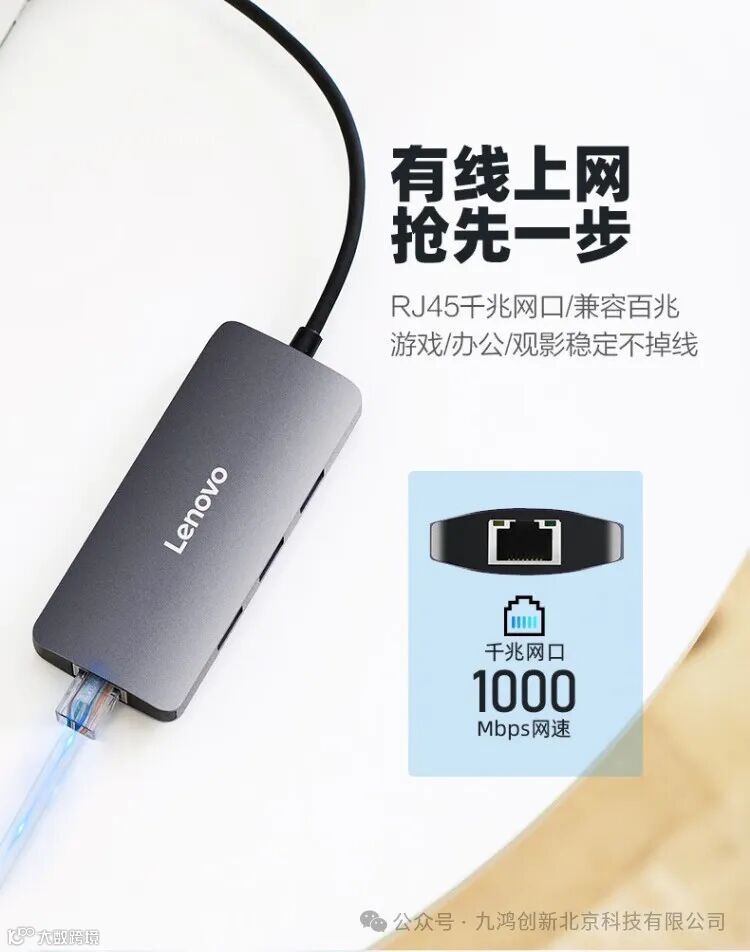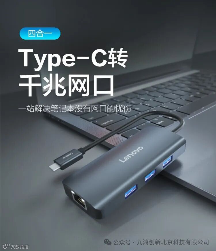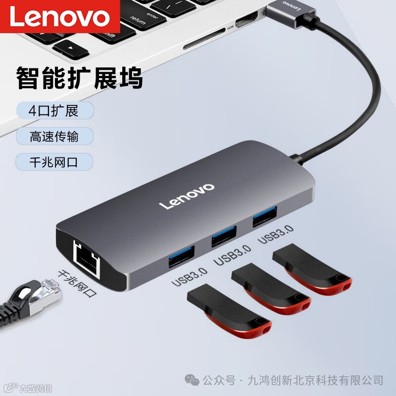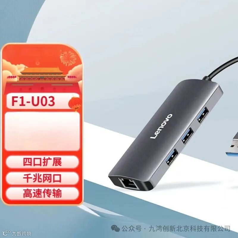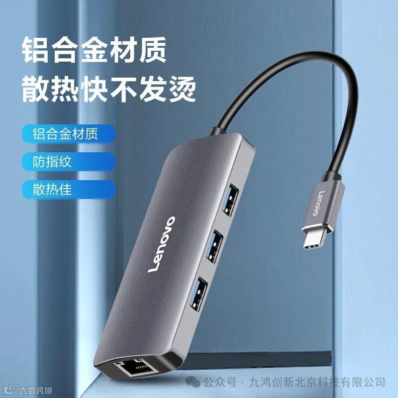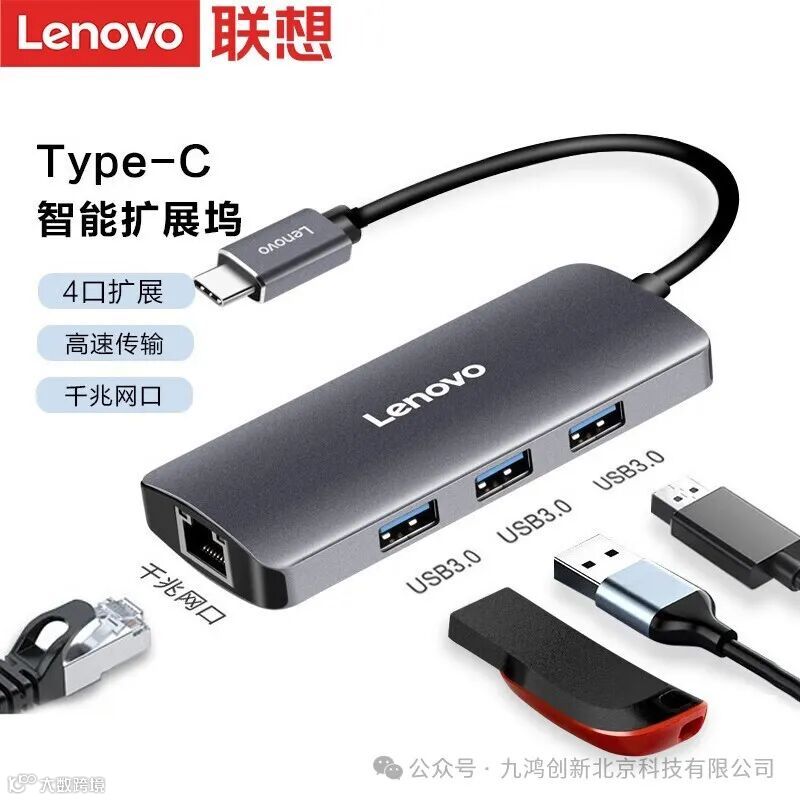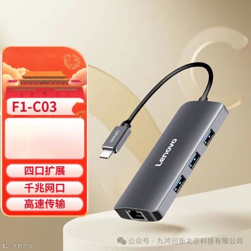 联想拓展坞Type-C转千兆网口USB-C转RJ45有线网卡转接头笔记本电脑USB3.0*3扩展坞 USB扩展坞F1-U03(100PCS/箱)