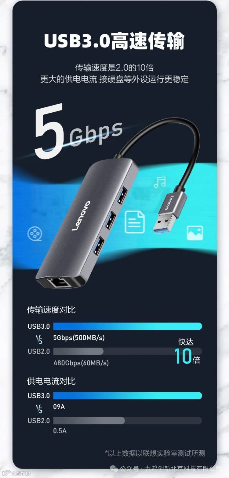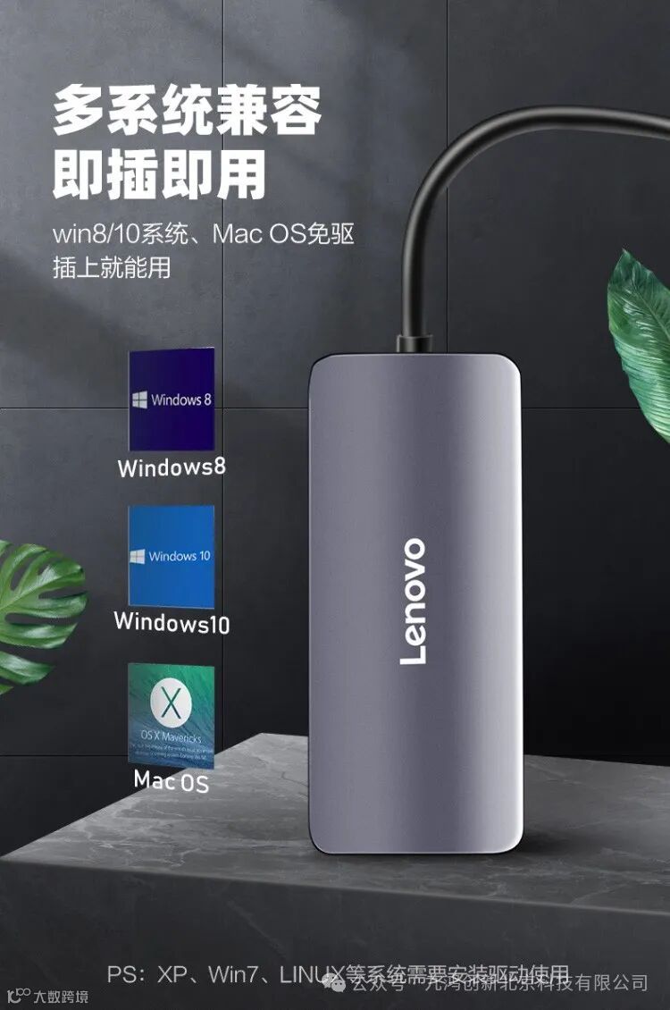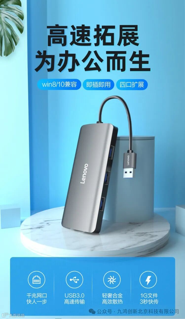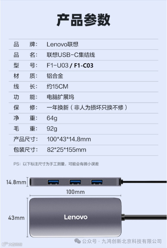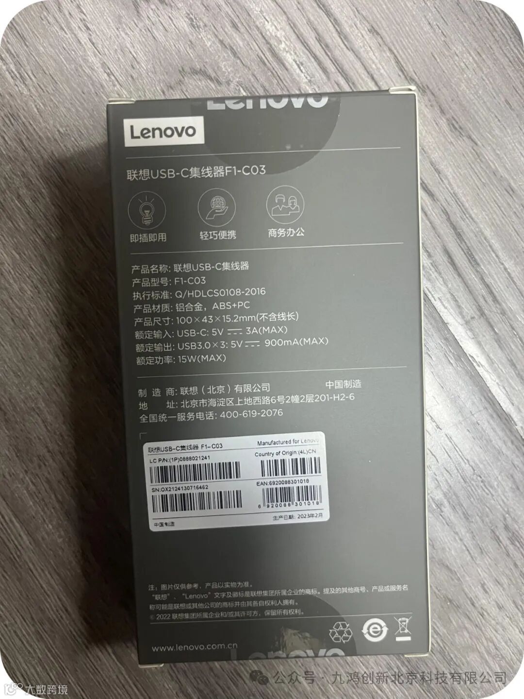 联想拓展坞Type-C转千兆网口USB-C转RJ45有线网卡转接头笔记本电脑USB3.0*3扩展坞 USB扩展坞F1-U03(100PCS/箱)