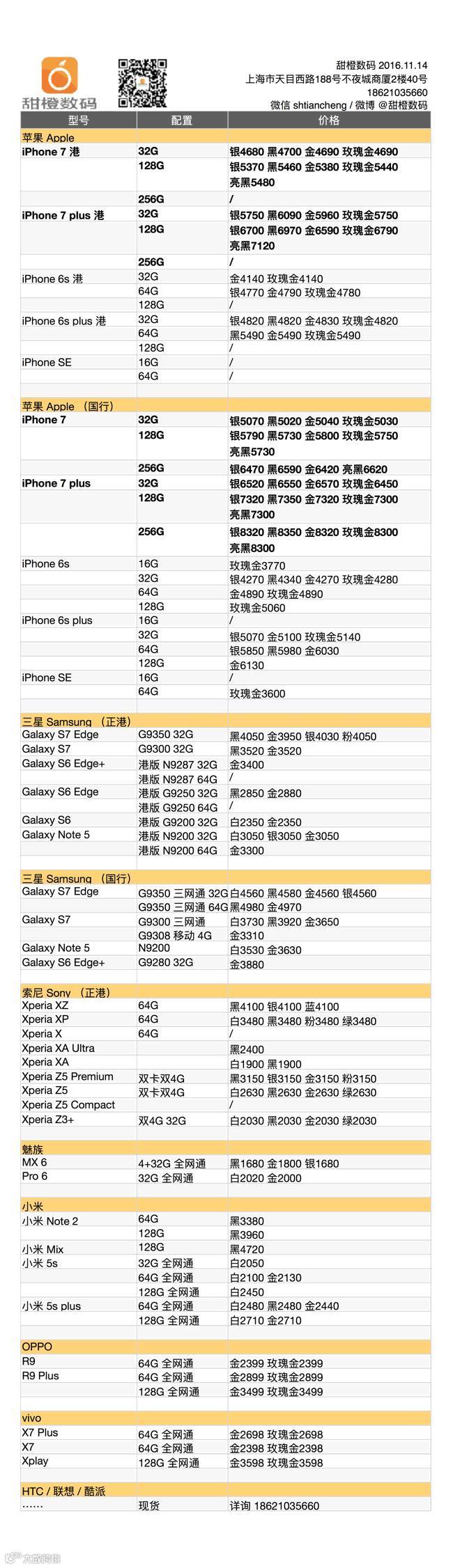 iPhone 7 及 plus 港版大部稳定,部分机型还有 10 元降幅,而国行版在经过周末的低价走势后略有反弹;小米新机 Mix 和 Note 2 到店热销;三星、索尼稳定。