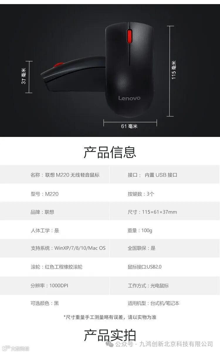 联想(Lenovo)无线轻音鼠标M220