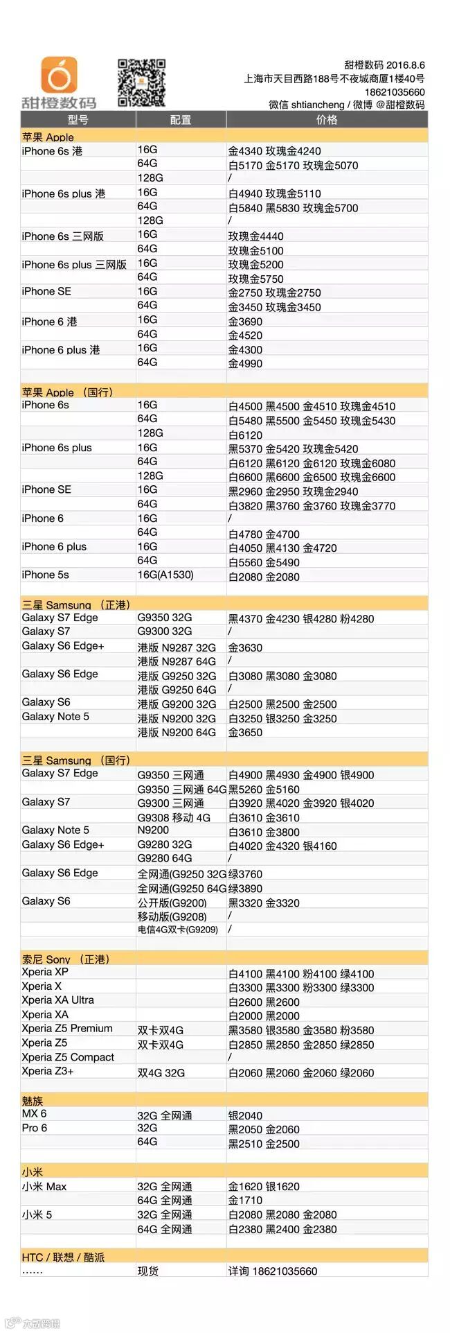 iPhone 6s 及 plus 的港版继续小幅走低,幅度大约 20 元左右;iPhone 6 及 plus 和 iPhone SE 价格稳定;三星 Galaxy 系列价格趋稳;魅族新机 MX 6 到店开卖;小米系列价格基本没有变化。