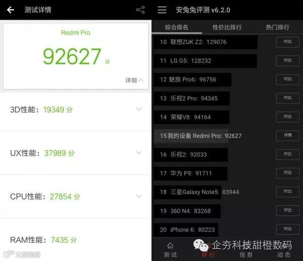 我们先来看看红米Pro的安兔兔跑分情况。