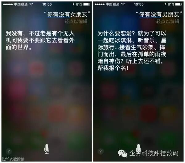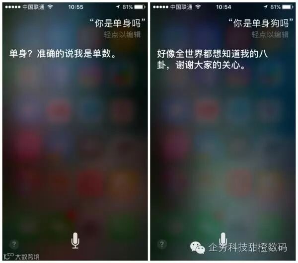 Siri:单身?准确的说我是单数。或者:好像全世界都想知道我的八卦,谢谢大家的关心。
