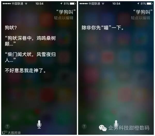 既然Siri都这么说了,那咱们就让它学狗叫。