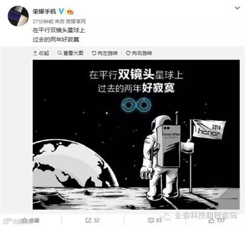 而早早就开始使用双摄像头的荣耀则表示自己在平行双摄像头上过去的两年很寂寞~