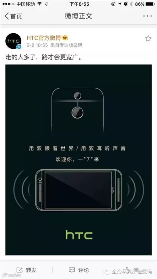 当然,也有一部分手机厂商对于采用了双摄像头的iPhone 7 Plus表示欢迎,率先采用了双摄像头和上下双扬声器的HTC手机就是其中一员。并且还表示:走的人多了,路才会更宽广,看起来是诚意十足。