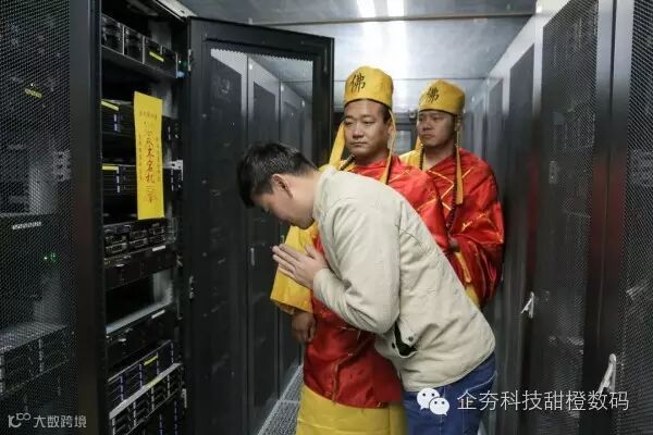 器带到寺庙进行开光。法师为其开光后,保其永不宕机。服务器开光后,程序员在两名法师陪同下将服务器带回机房。两名法师为服务器机组贴符,保佑其永不宕机。