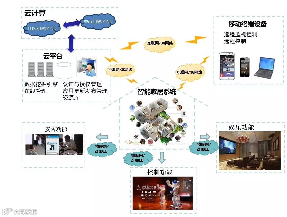 云服务除了向用户提供大容量的数据存储空间之外,同样担负了更多更关键的作用!智慧生活如今已经逐渐进入到人们的视线之中,并且,将会在更多更广泛的人群中实现,在智能化的家庭生活中,无线网络无时无处不在,云计算可以确保用户在任何时间,任何地点得到最快捷、最安心的服务,通过云计算,用户真正就是上帝。通过云计算,智能家庭将会成为一个开放的云平台,手机、平板电脑、个人电脑等终端都能够实时分享信息,锁定关注的焦点,以满足用户关于安防、舒适乃至社交方面的需求。随着物联网的进一步发展,以及智慧城市、智慧医疗、智慧交通等产业地发展壮大,智能家居将会在物联网时代发挥更大更加积极的作用。