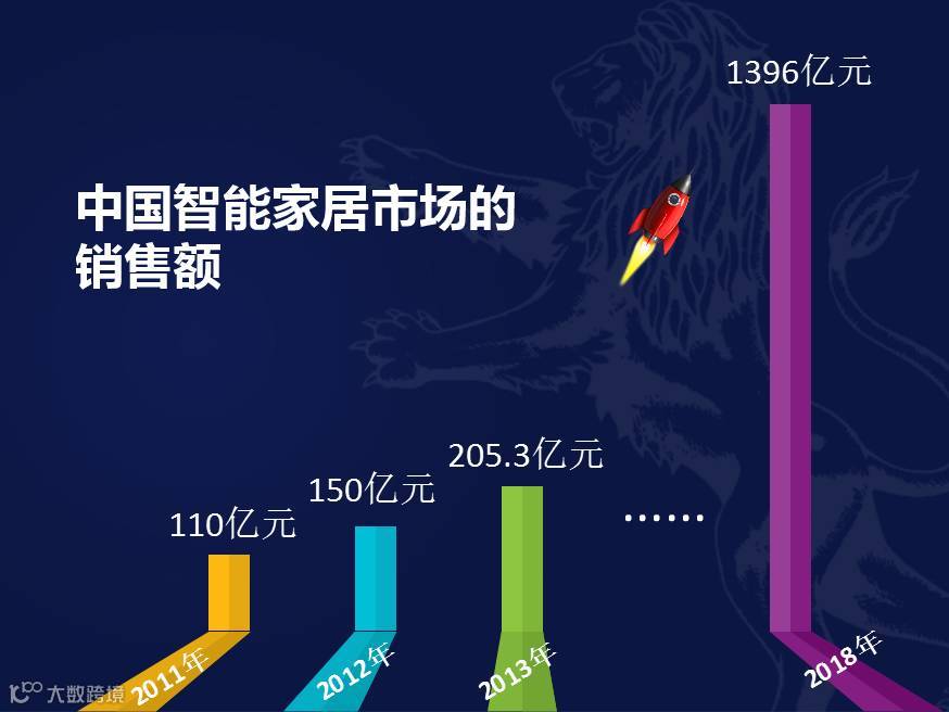 2011年中国智能家居市场的销售额已经达到110亿元人民币,2012年这一数据为150亿元,2013年为205.3亿元左右,根据中投顾问《2016-2020年中国智能家居投资分析及前景预测报告》的预测,到2018年,全球智能家居市场总规模将达到916亿美元;2018年中国智能家居市场规模将达到1396亿元,市场规模约占全球总规模的32%。2020年中国智能家居市场规模将达到3000多亿元。