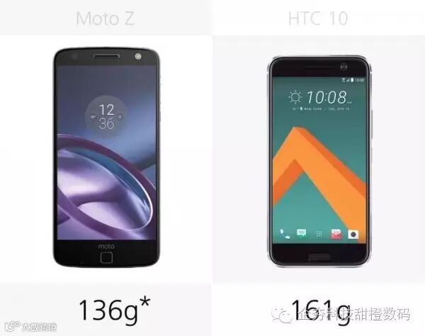 Moto Z在重量上要比HTC 10轻16%,如果在Moto Z上安装模块自然会增加重量。