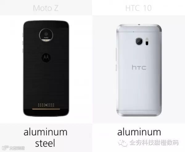 摩托罗拉称Moto Z采用不锈钢和铝合金混合打造。HTC 10则是一体成型铝合金材质。摩托罗拉表示还有部分“Style Shells”,可以在机身背面使用不同的材料,例如木质、皮革和织物纤维。