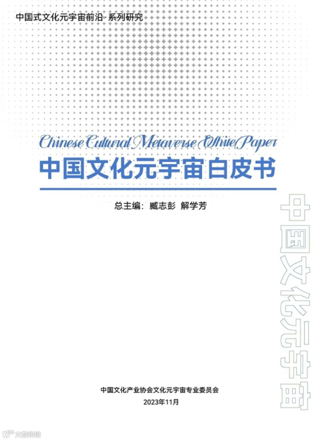 《中国文化元宇宙白皮书》在会上正式发布。该白皮书是国内第一部全面、系统、深入分析与阐释中国文化元宇宙基础理论与产业实践的综合报告,由中国文化产业协会文化元宇宙专业委员会联合同济大学、清华大学、北京大学、复旦大学、上海交通大学、中国科学院、中国信通院、中国外文局等全国权威研究机构和产业专家联合编撰。同济大学教授、中国文化产业协会文化元宇宙专委会常务副主任臧志彭,同济大学人文学院解学芳教授担任总主编。