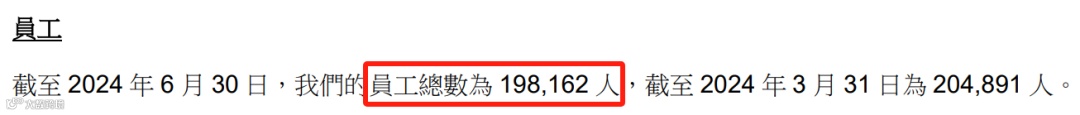 截至6月底,阿里巴巴的员工总数跌破20万人,仅剩198162人。