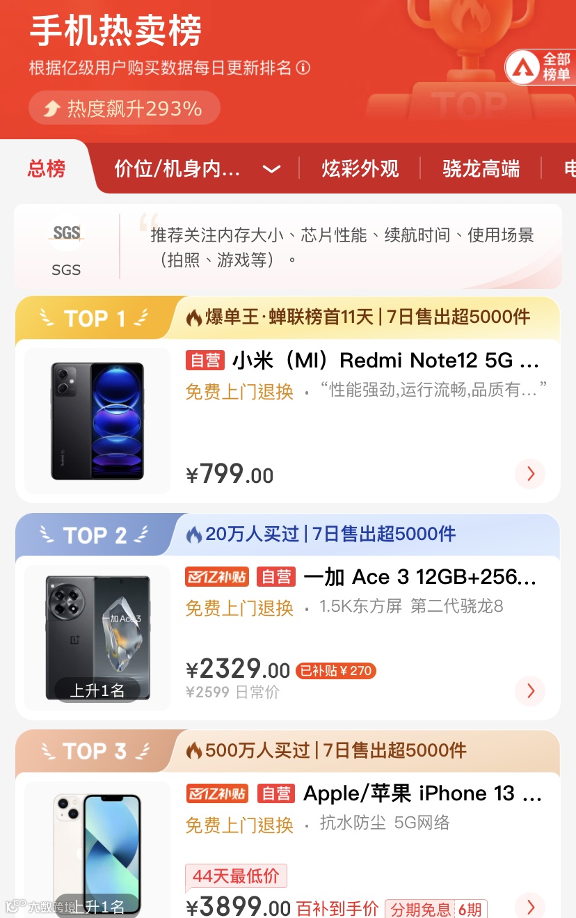 上图是某购物APP的手机热卖榜,苹果手机的销量已经不像前几年那般一骑绝尘,领先其他手机品牌。在两年中,苹果公司增加了几名劲敌。