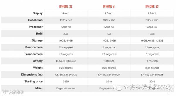通过下方的表格,相信你会对 iPhone SE 和 iPhone 6s 的各项参数有更直观的了解。