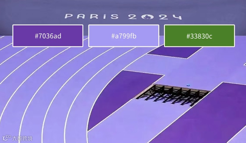 巴黎奥运会的配色方案以蓝、绿、紫三色为主。其中,紫色是法兰西体育场跑道的颜色选择紫色作为跑道颜色主要是因为其能让人联想到法国的薰衣草,能给观众留下与众不同的印象,打破常规。届时这条亮眼又兼具环保的紫色跑道将为巴黎奥运会留下独特的记忆。