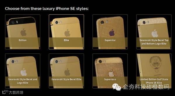 到目前为止,最昂贵的超奢华iPhone SE还买不到,通过该网站的信息可以了解到,该机售价将为7.7万美元。纯金全明星ICE版本的iPhone SE将覆盖有不少于200克的18k金,而如果你希望全世界都能感受你的存在的话,可以继续选择在它上面镶嵌364颗钻石,总计5.5克拉。