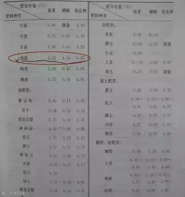 上面我们说了,各种有机肥相等于化肥的比例,下面我们说说几种常用有机肥原料的含量养分!