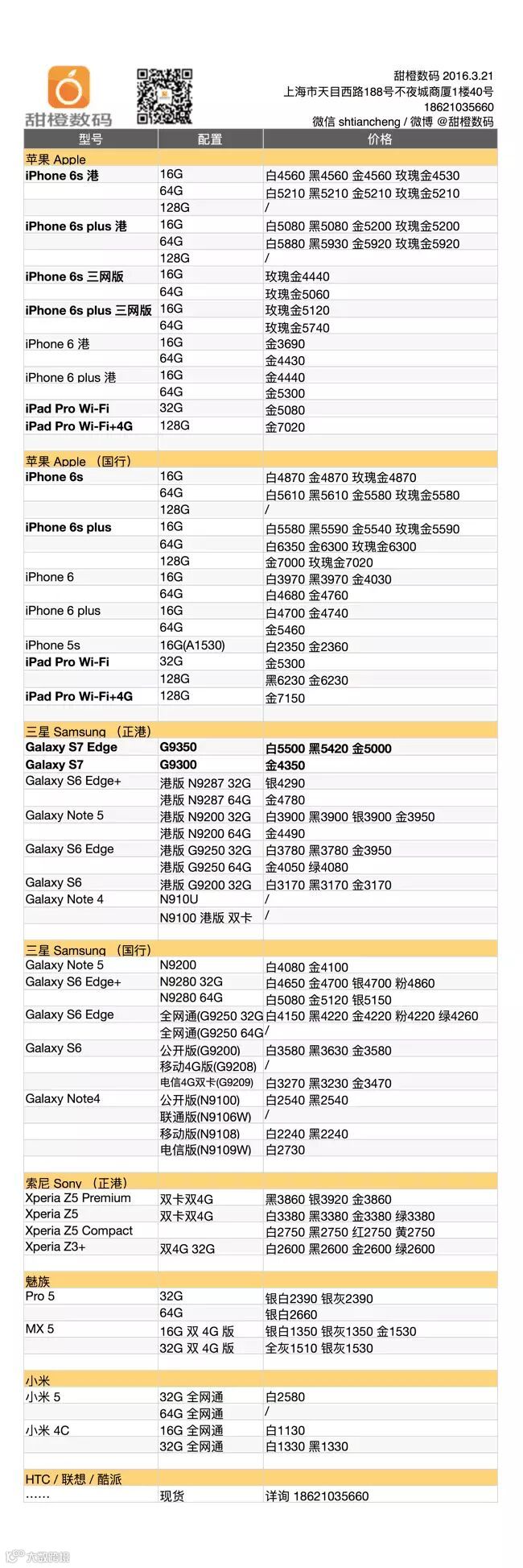 iPhone 6s 及 plus 港版入门版 16G 小幅波动,其余款型总体走低;iPhone 6 及 plus 小降;安卓阵营稳定。