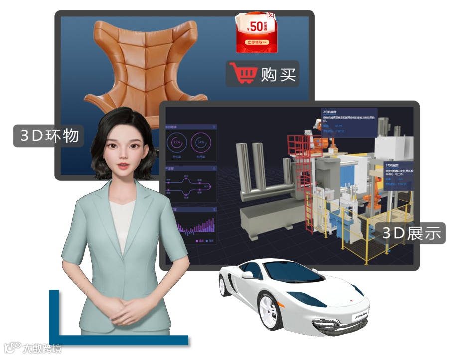 另有AI数字人导览功能,线上带领参观,语音同步,智能讲解。AI数字人表情丰富,形象多样,动作自然,更具亲和力,在带领客户了解工厂的同时,也能加深客户对企业的印象。