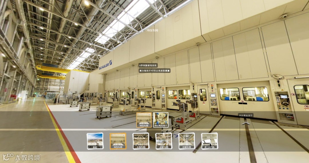 VR工厂采用专业的全景拍摄设备,高清图像采集、1:1复刻工厂环境,包括生产线及其工艺,透明化展示工厂生产环境/设备/工艺/产品/研发等生产作业流程。