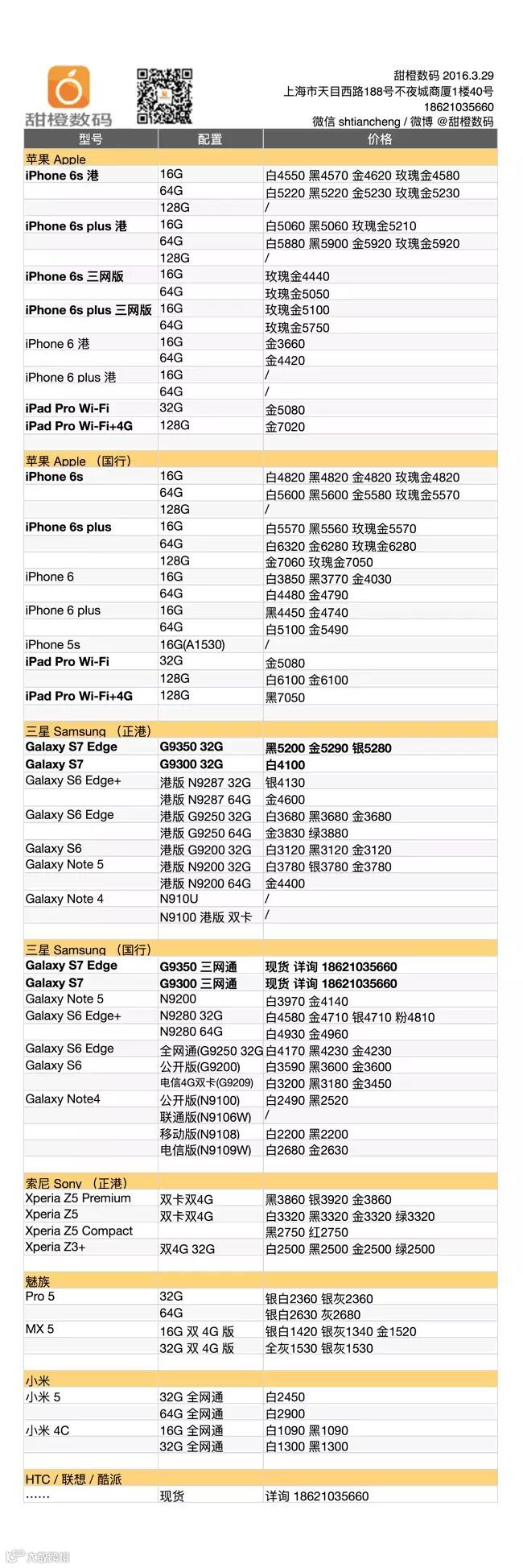 iPhone 6s 及 plus 港版价格稳定;三星 Galaxy S7、S7 Edge 港版今天大幅度降价,降幅超过 100,S6、S6 Edge、S6 Edge+ 等型号暂时稳定,Galaxy Note 5 小幅走低。