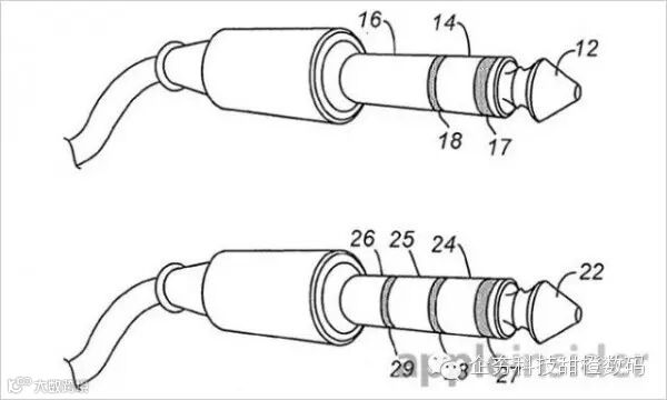 而苹果公司在专利中描述的TRS插头则采用的是柔性、弹性材料或热塑弹性材料,允许耳机接头出现一定程度的弯曲而不损坏。通常来说,这些材料还可以取代介电绝缘体,贯穿整个套筒的内部构件可以由涂覆在导电层中的弹性体。而这种新型的柔性插头完全可以经受得住轻微的弯曲,在某些情况下完全可以避免因轻微的弯曲而导致的插头损坏。