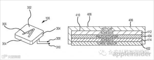 专利所描述的键盘原理与之前苹果的Force Touch触控技术类似,只是尺寸大了不少。每个物理按键下都配备压力传感器,压力传感器位于键帽下面,致动器能产生触觉反馈。
