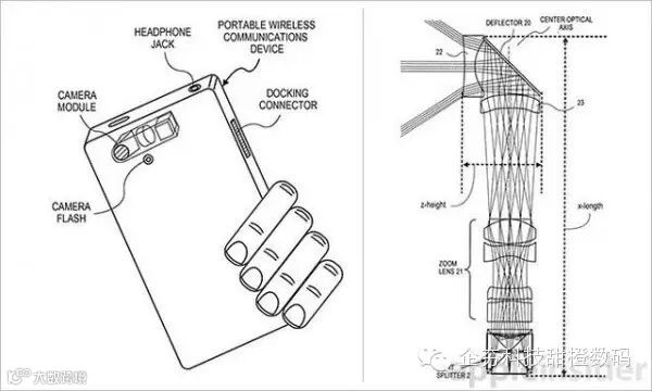 这项专利名称为“三色分光摄像头模块”,简单的说就是带分光器的数码摄像头专利。从专利图片上看,该专利采用了基于棱镜的传感器方案,并内置在一台iPhone之类的电子设备中。该技术最大的亮点是无需对色彩通道进行处理或“去马赛克”,从而最大化像素阵列的解析度。