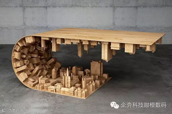日前塞浦路斯设计师Stelios Mousarris受电影《盗梦空间》失重场景的启发,设计了一款名为“wave city(翻转城市)”的咖啡桌,将一块布满建筑物的场景从中间向上翻折至与下半部分平行,形成一个"J"形,上半部分“城市”完全翻转,充当咖啡桌桌面。