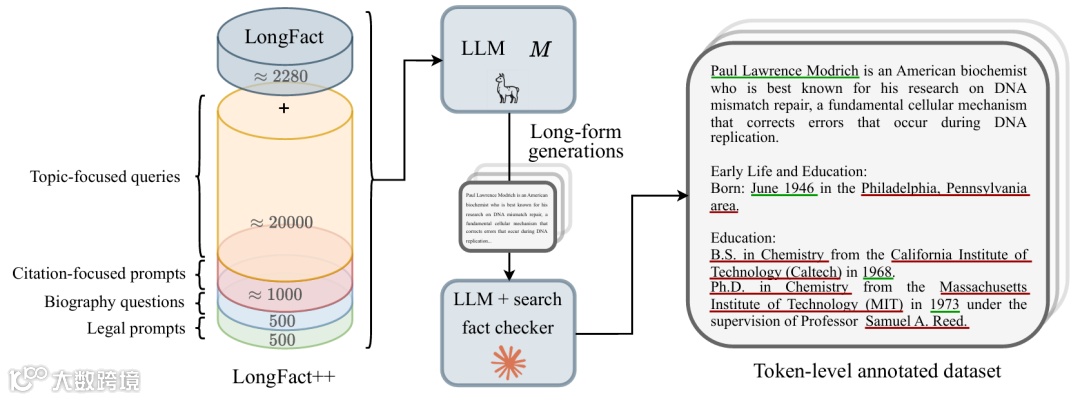 数据集构建是该方法成功的基础。研究团队在 LongFact 数据集基础上,创建了规模扩大 10 倍、领域更多样化的提示集 LongFact++。该数据集包含四大类提示类型:主题查询、名人传记、引文生成和法律案件,专门用于诱导大模型生成富含实体的长文本。这种设计巧妙地模拟了实际应用中最容易产生实体幻觉的场景,为后续模型训练提供了高质量素材。