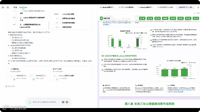 从用户的角度来看,GenFlow2.0 带来的改变是实实在在的。对于职场人士而言,原本需要花费数天时间准备的汇报材料,现在借助 GenFlow2.0,可能几个小时就能完成,而且质量更有保障;对于学生来说,撰写论文时,AI 能帮忙整理资料、规范格式,让他们能将更多精力放在内容创作上;对于创业者,快速生成商业计划书、项目方案,能帮助他们更高效地对接资源、推进项目。这种从实际需求出发的产品创新,让 AI 真正走进了人们的工作和学习,成为了得力的助手。