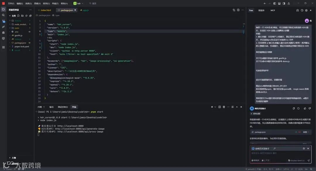 案例一:开发一个生成 HDR 高亮图的网站。近期,苹果用户应该对一只闪光青蛙的表情包印象深刻。了解到其原理后,我们决定基于刚刚创建的网页开发助手 Agent,开发一个能够将任意图片转换为 HDR 效果的工具。用户不仅可以上传自己的图片生成 HDR 版本,还能利用 AI 生图服务创建表情包,然后再转换为 HDR 版本。经过几轮简单的需求补充和 bug 修复后,我们使用 veFaaS MCP 将整个代码打包上传到火山云服务,并配置绑定 API 网关,实现了公网访问。考虑到长域名不易记忆,我们利用之前配置的域名服务 MCP,通过 AI 轻松查找相关域名及价格。由于域名备案需要一定时间,我们先将其绑定在经典域名下,方便大家体验。网址为https://hdr.agent - wiki.cn/ 。