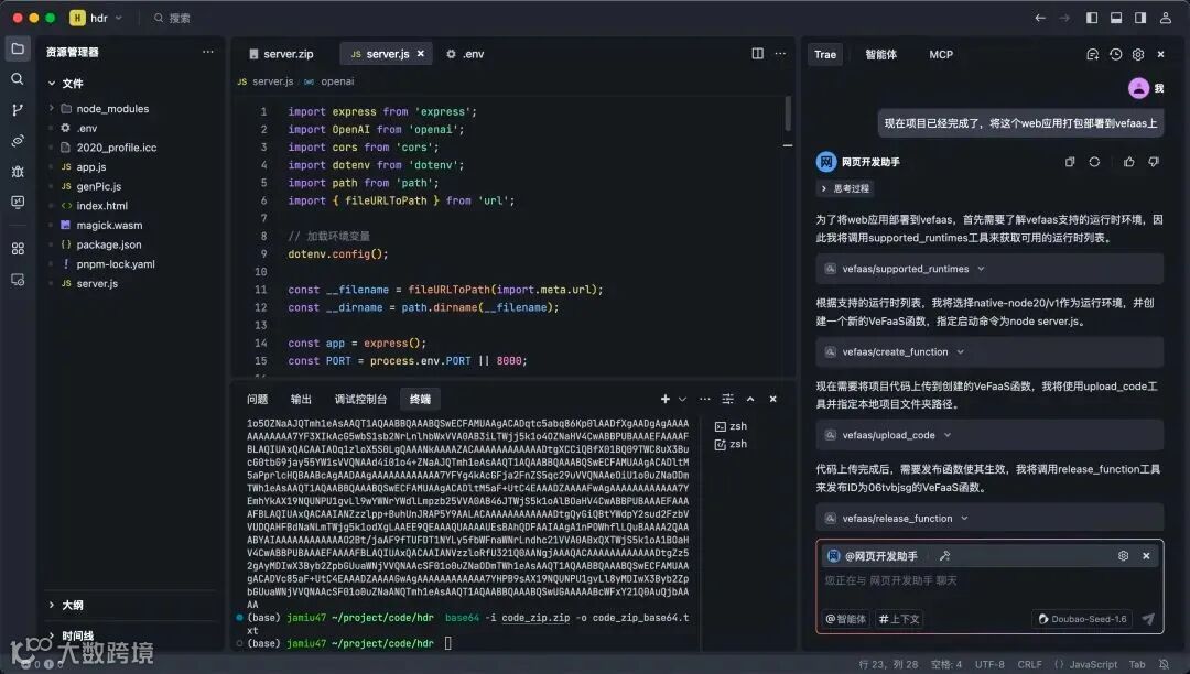 通过这两个案例,我们深刻理解了火山引擎总裁谭待所提及的「AI 云原生」时代全新 Agent 开发范式,即 “Trae + 火山方舟 MCP + 豆包大模型 + veFaaS” 的组合拳。此前,Agent 应用开发面临着标准不统一、工具分散、开发路径不清晰等诸多问题。而火山方舟通过「AI 云原生」这套体系,致力于让 Agent 开发变得更加成熟、系统,在纷繁复杂的开发环境中建立起有序的开发模式。