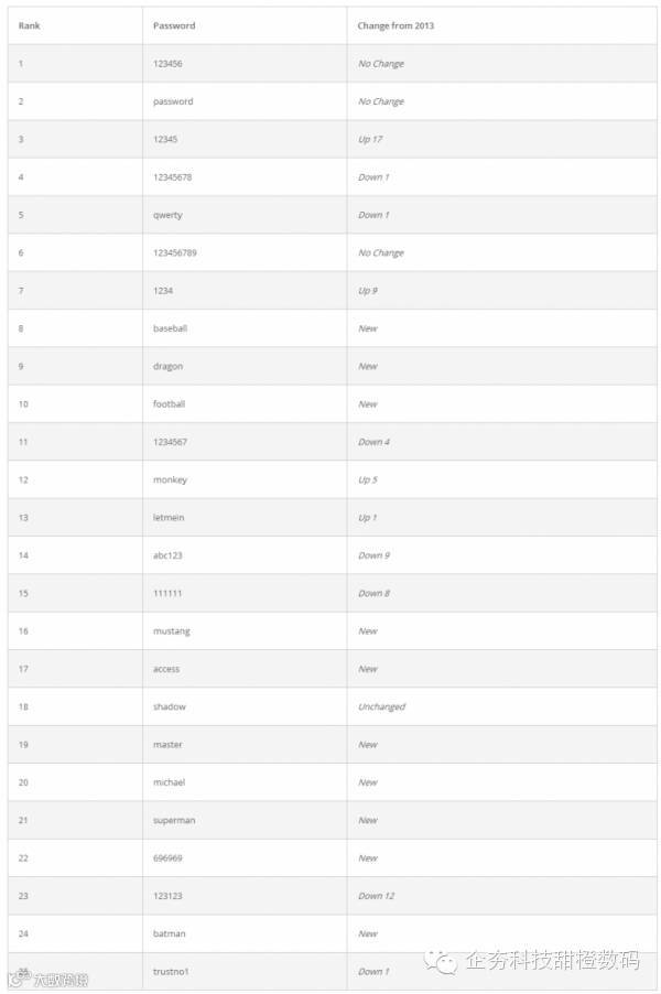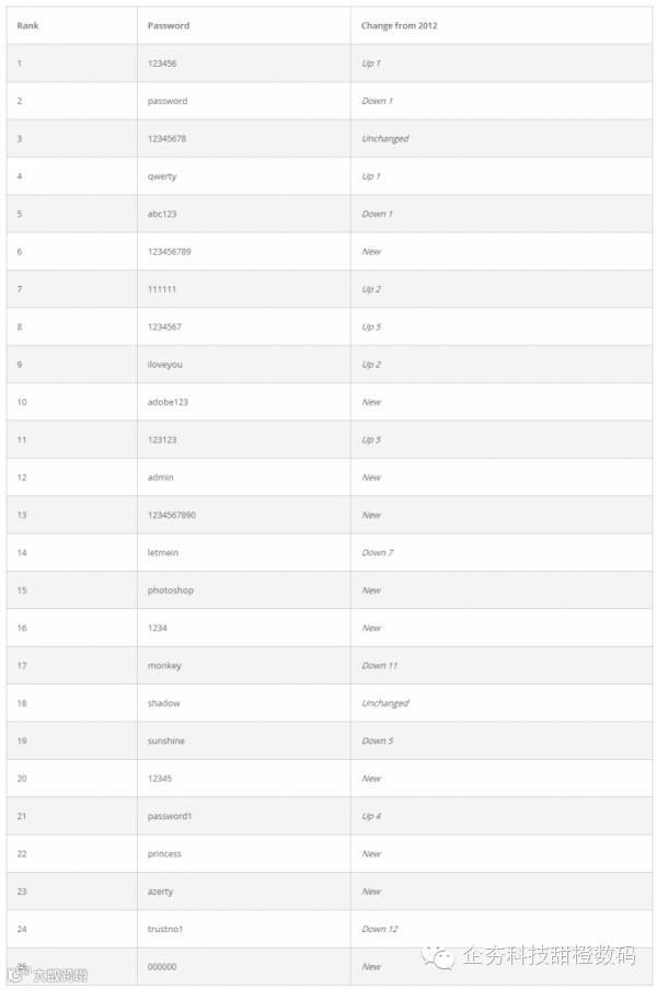 以下就是本年度最简单,也是最不安全的25个密码完整榜单。有没有人中枪,快来认领。
