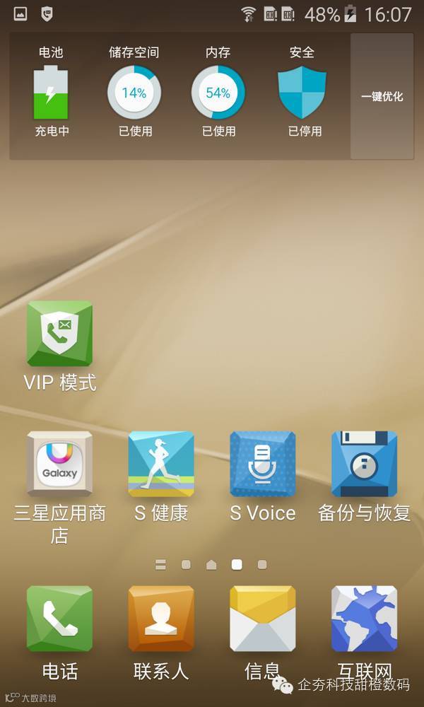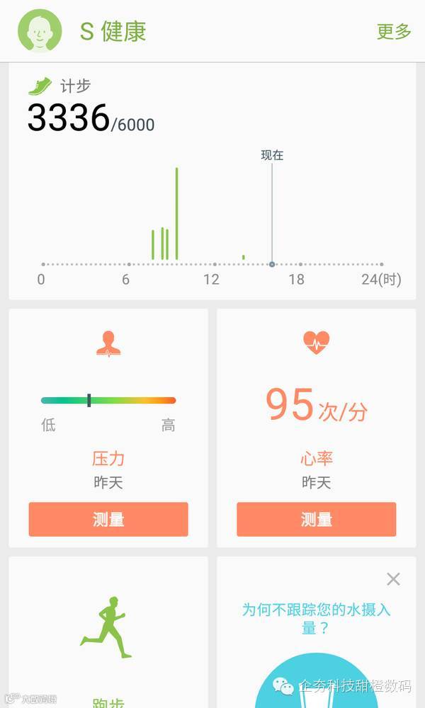 系统内置三星健康应用,可利用背部闪光灯下方的传感器测量心率、压力等。也可以记录步数。