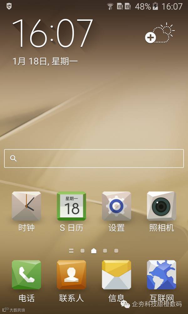 因为采用Android系统,与三星系安卓手机没太大差别,系统背景使用了金色图案,与外观相得益彰。但不得不说,在使用这款手机两天之内,我都忘记了这是一款智能手机。猛然想起于是下载了搜狐视频、开心消消乐等娱乐APP进行体验,本质上与普通触摸屏手机并无两样,只是若使用外部屏幕,极容易碰到虚拟按键;若使用内部屏幕,这手持方式让我感觉怪怪的……
