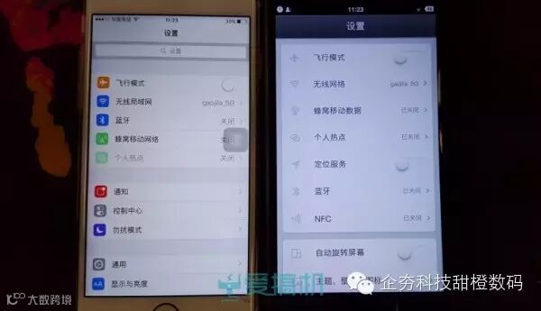屏幕色温对比,左为iPhone 6s,右为Smartisan T2