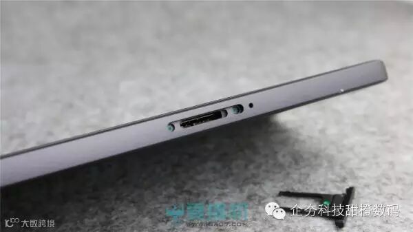 底部对称网孔中,左侧是麦克风,右侧是扬声器,没有采用旗舰主流的Type-C接口。