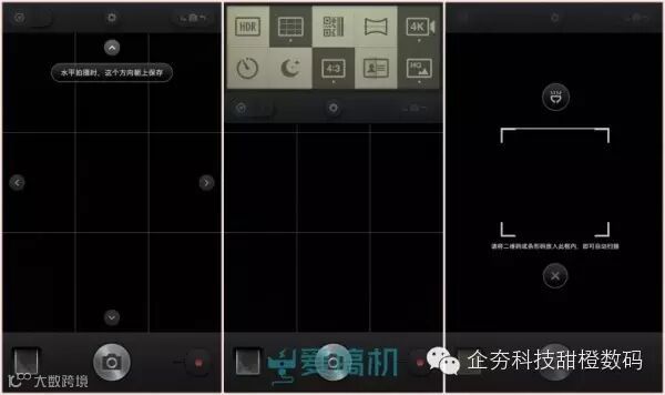 水平拍照时会显示哪个方向朝上,自带二维码和名片扫描;
