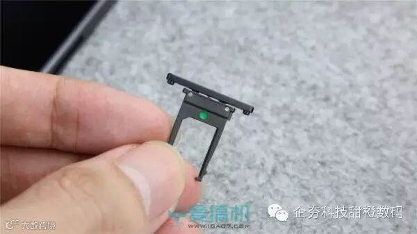 SIM卡槽隐藏在音量键下方,卡托设计简单精巧,内置弹簧可以允许较大的公差并让音量按键保持紧致。卡槽按键的虚位甚至比左侧的按键还要小,部分网友表示左右音量键手感和松紧度不一,但我们拿到的机器还是挺相近的,或许是批次之间的差异。