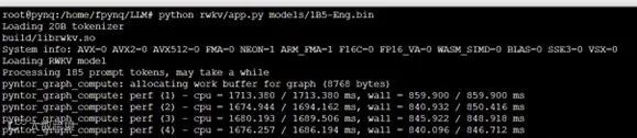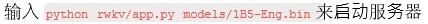 LLM/rwkv⽬录下,app.py为后端服务器,其前端⽹⻚和JS分别在templates和static⽂件夹中。模型的加载以及推理在chatbot.py中。可以设置语⾔等,也可以修改提⽰词。