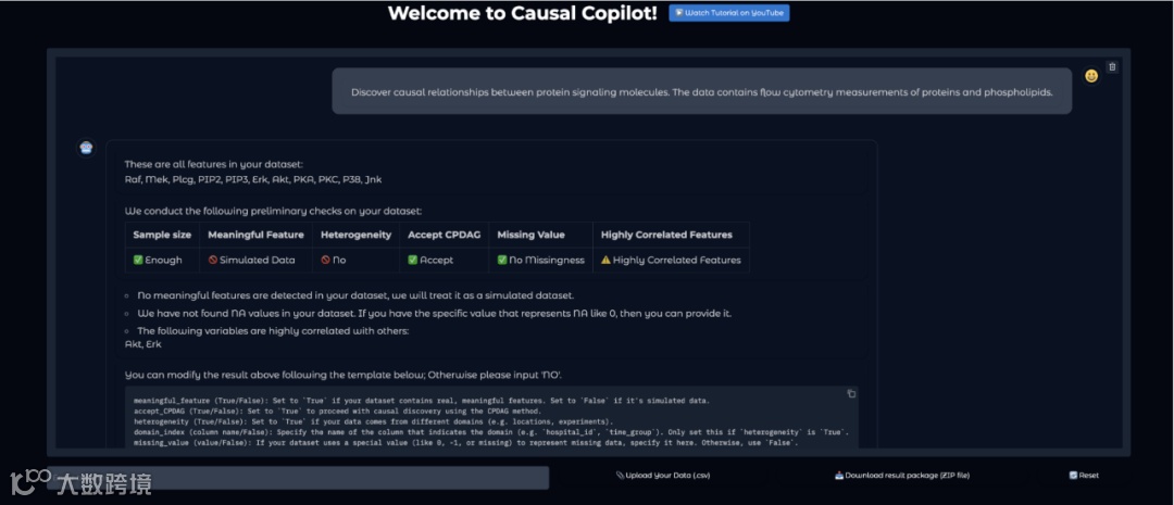 Causal-Copilot 的另一大贡献在于其开放生态的构建。研究团队将系统完全开源,提供代码、教程和在线演示平台(论文链接:https://arxiv.org/abs/2504.13263,开源代码:https://github.com/Lancelot39/Causal-Copilot,在线体验:https://causalcopilot.com/),邀请全球研究者共同参与改进。这种开放策略不仅降低了技术使用门槛,更推动了因果分析技术的普及与创新。无论是资深的数据科学家还是领域研究者,都能通过该工具快速开展因果分析,无需在算法细节上耗费大量精力。